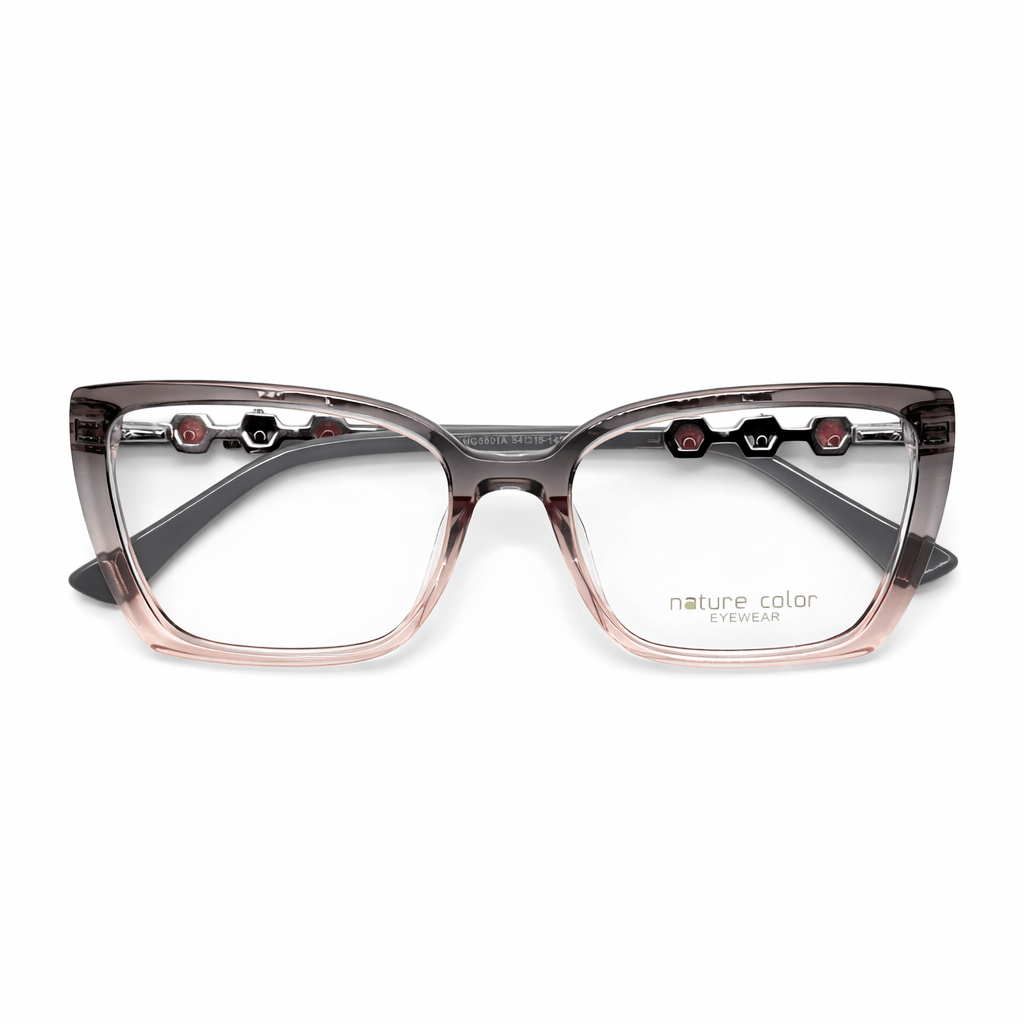 Son dégradé subtil entre le gris et le rose apporte une touche de douceur et de modernité, tout en restant facile à porter au quotidien. Les détails sophistiqués sur les branches renforcent son caractère unique et tendance.