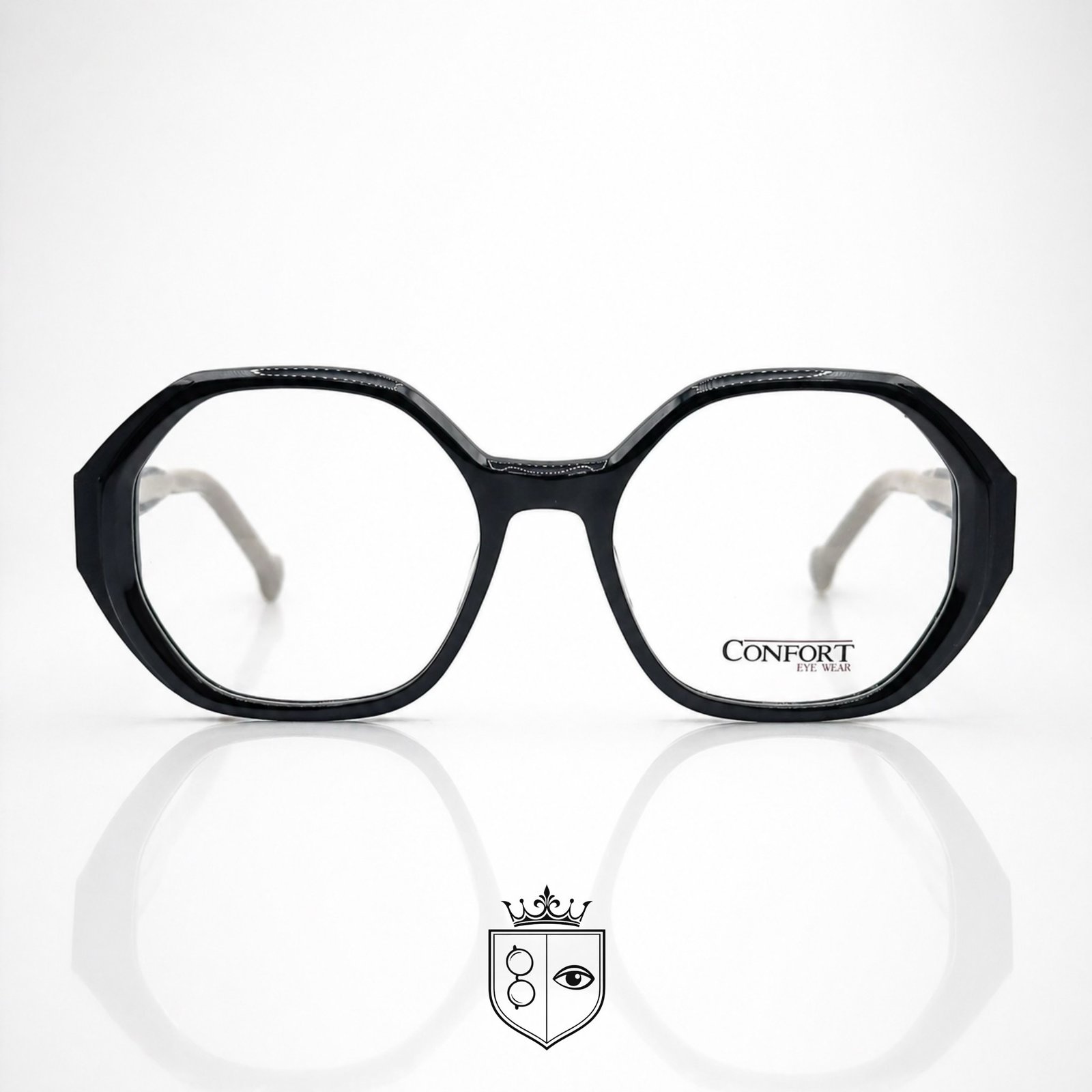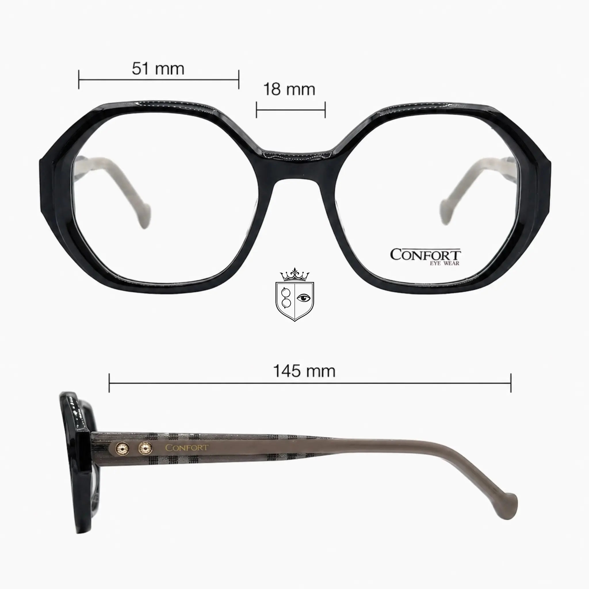 Sa face en acétate apporte une structure solide et une belle profondeur visuelle, tandis que ses branches fines, légèrement translucides, ajoutent une touche de légèreté et de finesse. Les détails métalliques délicats viennent compléter l’ensemble avec une finition soignée.